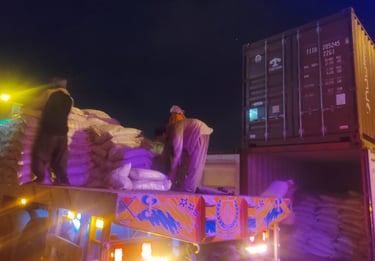 تُدير الشركة منظومة لوجيستية مرنة وفعالة تشمل النقل البري، التعبئة، والتخليص، مما يضمن انسيابية حركة البضائع من موقع الإنتاج إلى وجهة التصدير أو التسليم النهائي.
